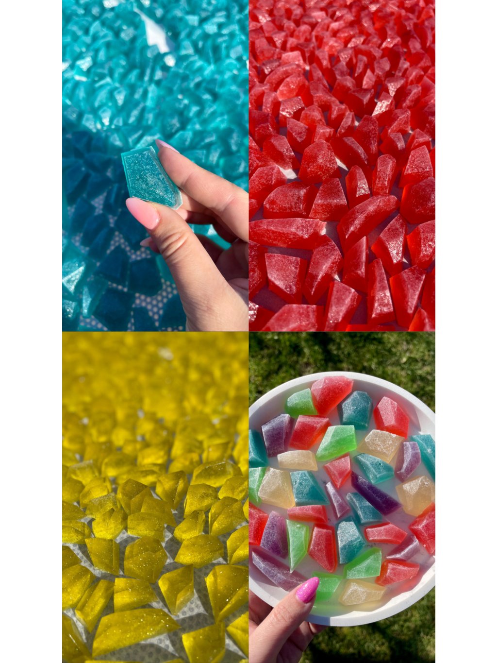 Jedlé kryštály - príchute: jablko, pomaranč, čerešňa, čučoriedka