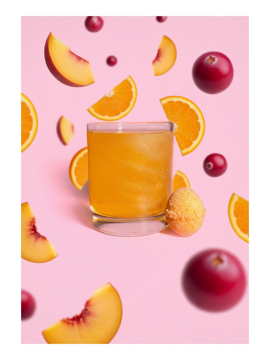 Broskyňa, pomaranč, brusnica príchuť - Trblietavá DRINKOVÁ BOMBA