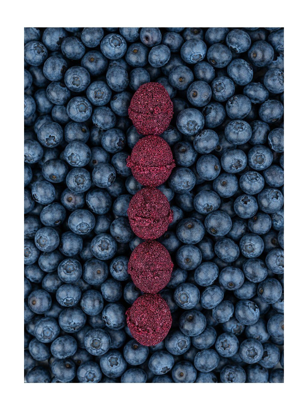 Zloženie: cukor, 20 % lyofilizované čučoriedky, kyselina citrónová, jedlá sóda, multivitamín (bisglycinát horečnatý, vitamín C, vitamín B3, vitamín E, bisglycinát zinočnatý, vitamín B5, vitamín B6, vitamín B2, vitamín B1, bisglycinát mangánatý, citrát meďnatý, vitamín A, vitamín B9, vitamín K2-MK7, vitamín B7, L-selenometionín, molybdénan sodný, pikolinát chrómu, vitamín D3, vitamín B12), čučoriedková aróma, sukralóza
