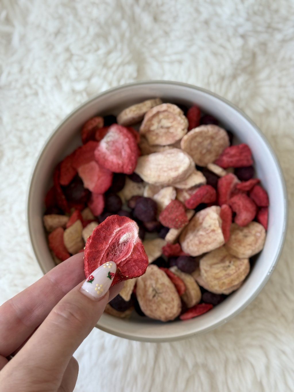 Zloženie: 100 % lyofilizované (mrazom sušené) jahody, banán, čučoriedky