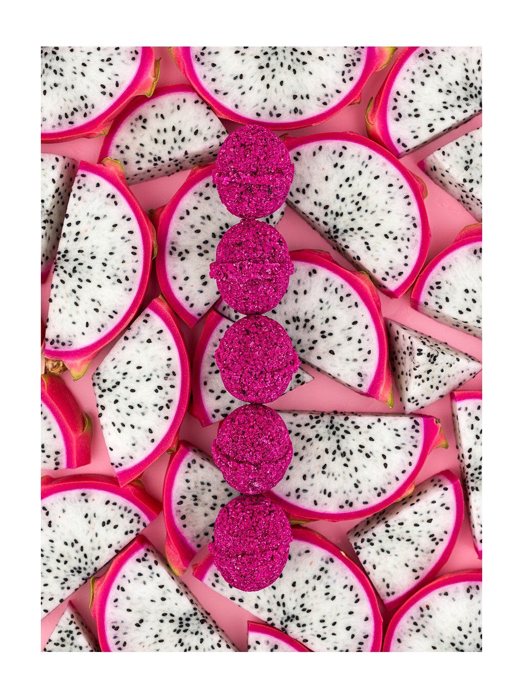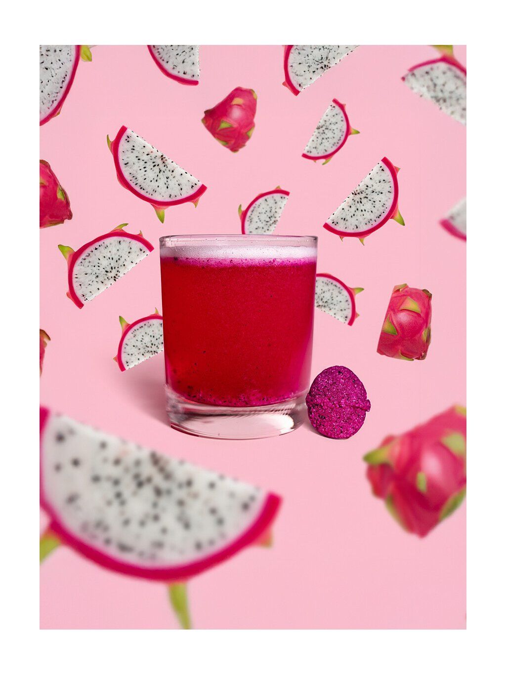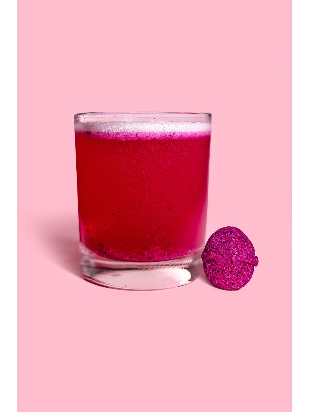 Zloženie: cukor, 20 % lyofilizované dračie ovocie, kyselina citrónová, jedlá sóda, ashwagandha – koreňový extrakt, aróma dračieho ovocia, sukralóza