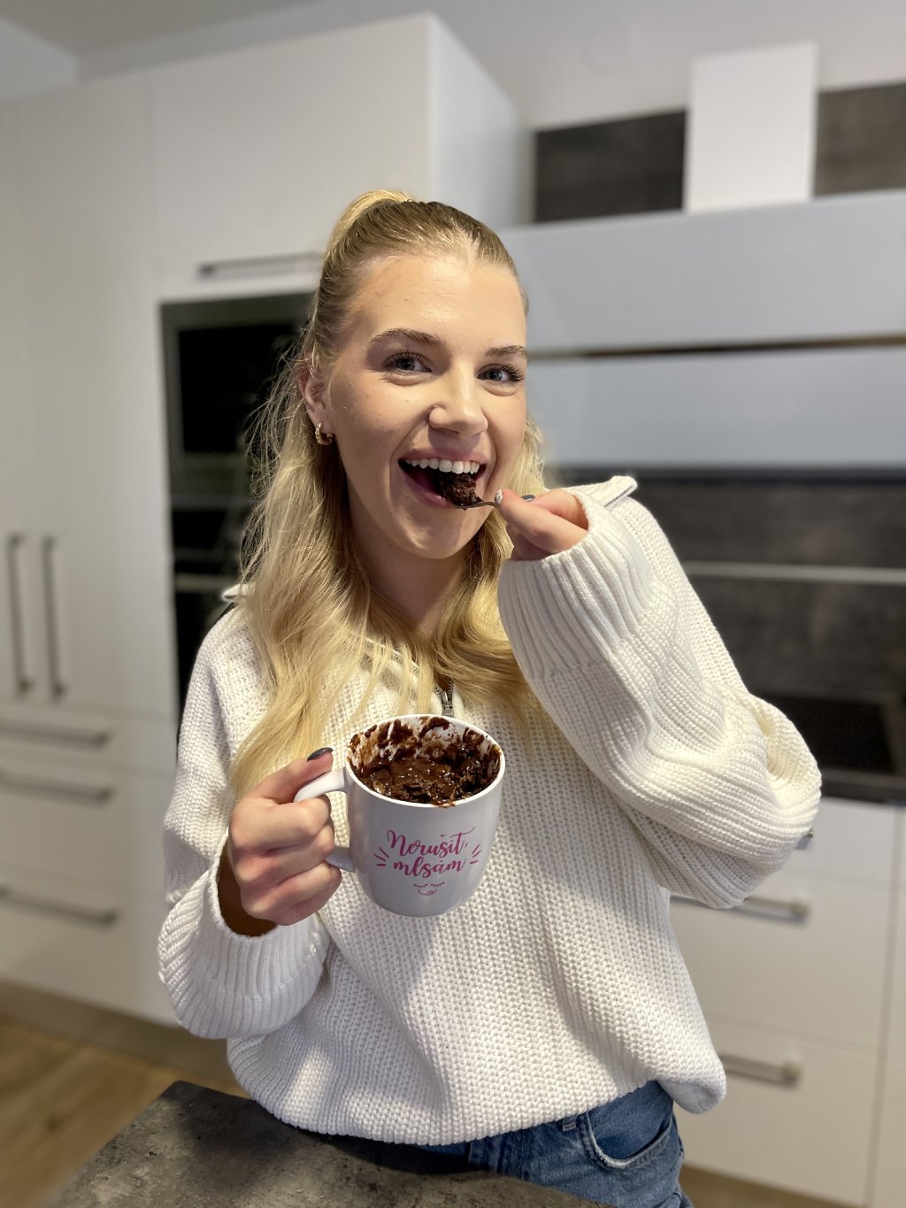 Následně vše pořádně promíchat a dát do mikrovlnky na největší výkon na 2 minuty. Nechejte minutku vychladnout a může se konečně mlsat.