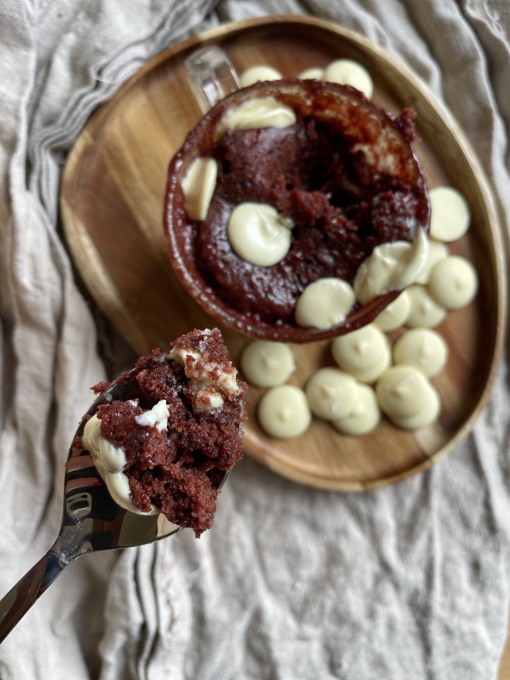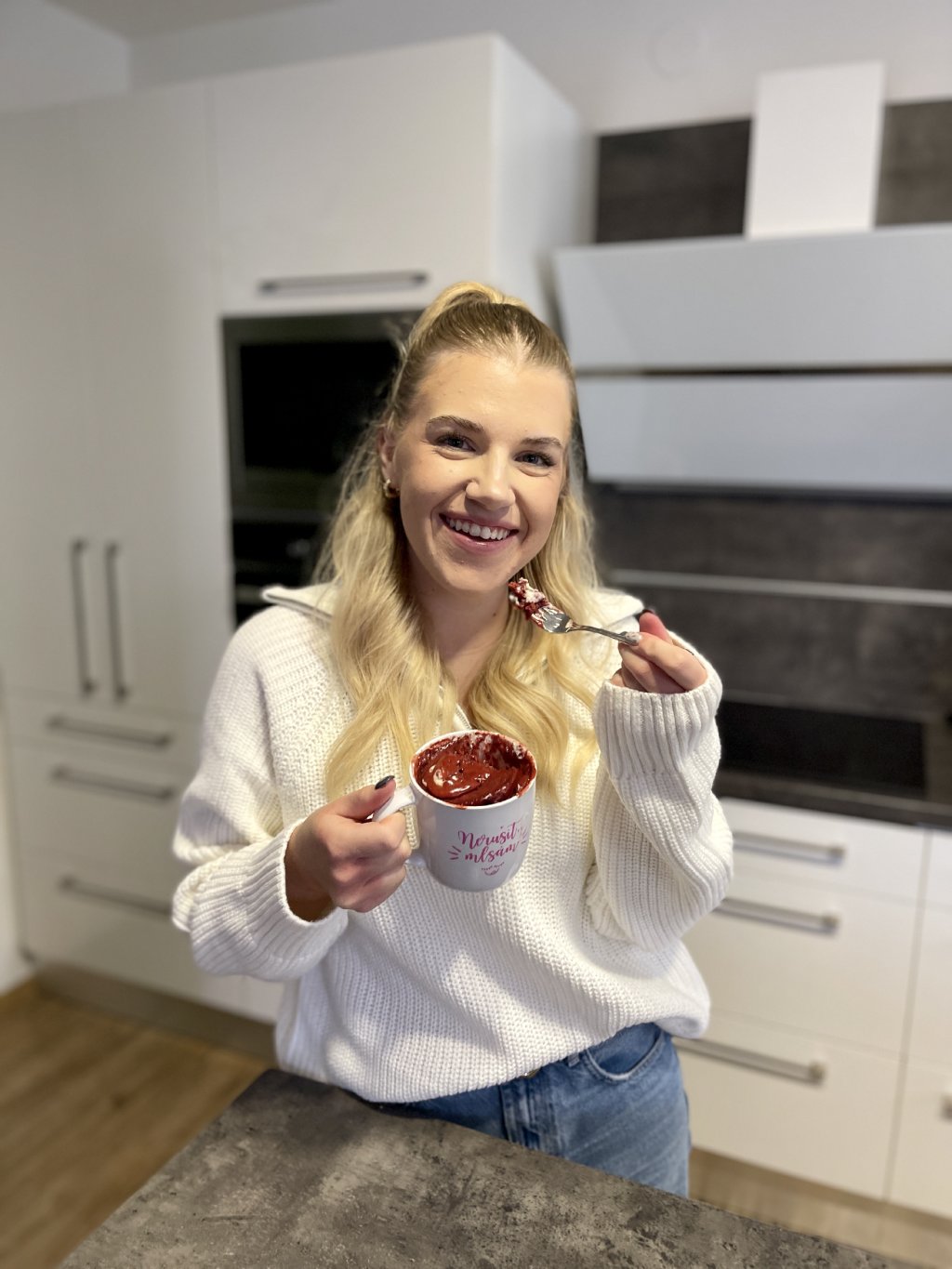 Následně vše pořádně promíchat a dát do mikrovlnky na největší výkon na 2 minuty. Nechejte minutku vychladnout a může se konečně mlsat.
