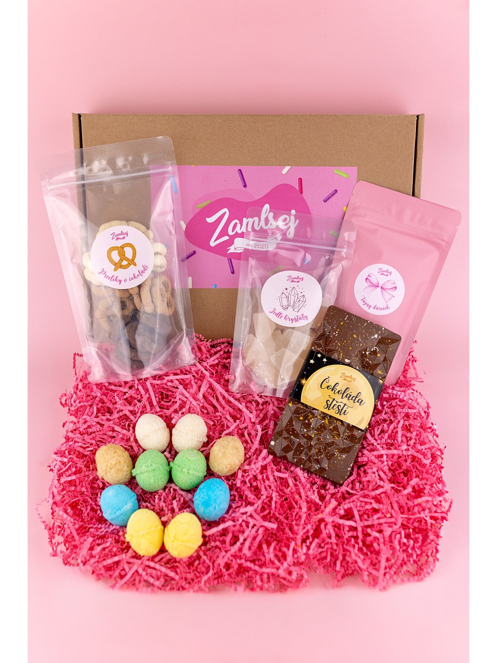 Vše zabalené vkrásné dárkové krabičce s uvítací kartičkou a horoskopem.