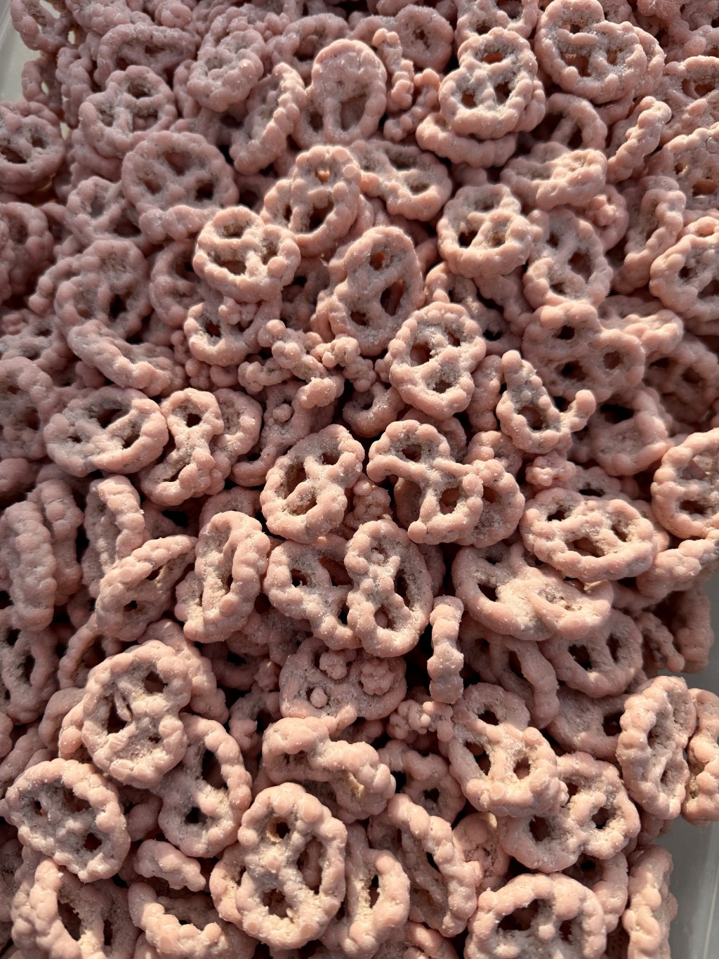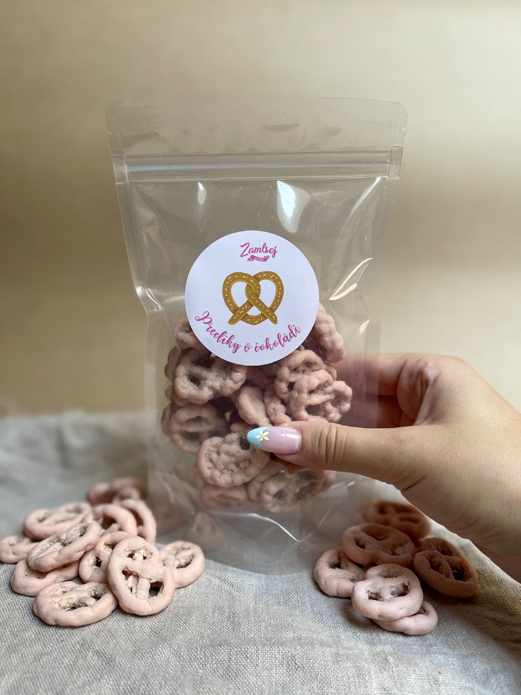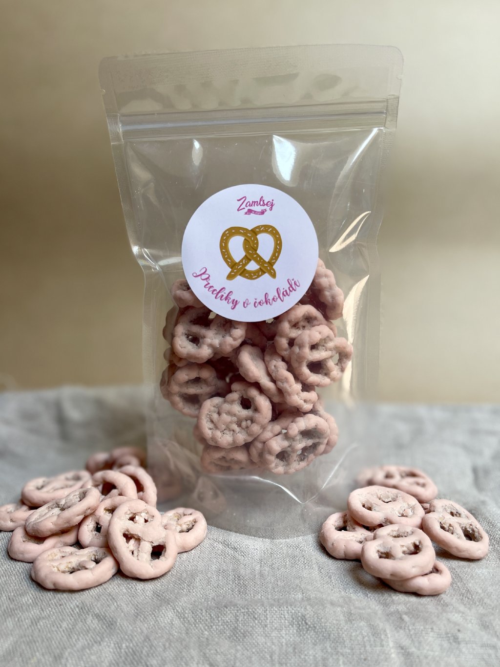 ktorú založila mamka a dcéra v roku 2020. Zaoberáme sa ručnou výrobou jedinečných sladkostí. Zakladáme si na kvalite – ako použitých surovín na výrobu, tak aj finálnych produktov. A ako bonus – všetko robíme s láskou a za kvalitu našich výrobkov ručíme aj vrátením peňazí. Celý príbeh nájdeš -TU- Zloženie: Čokoláda - Biela čokoláda 40 % hm. (cukor, kakaové maslo, sušené plnotučné mlieko, emulgátor: sójový lecitín, prírodná vanilková aróma), Praclíky - pšeničná múka, rastlinný olej (repkový, a slnečnicový v rôznom pomere), jedlá soľ, jačmenný sladový výťažok, regulátor kyslosti (hydroxid sodný), droždie, pšeničný škrob, himalájska soľ, farbivo: E120
