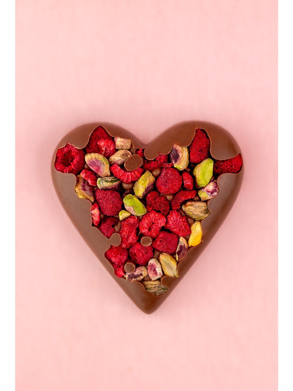 1 ks MAXI pralinka – mliečna čokoláda s malinami a pistáciami