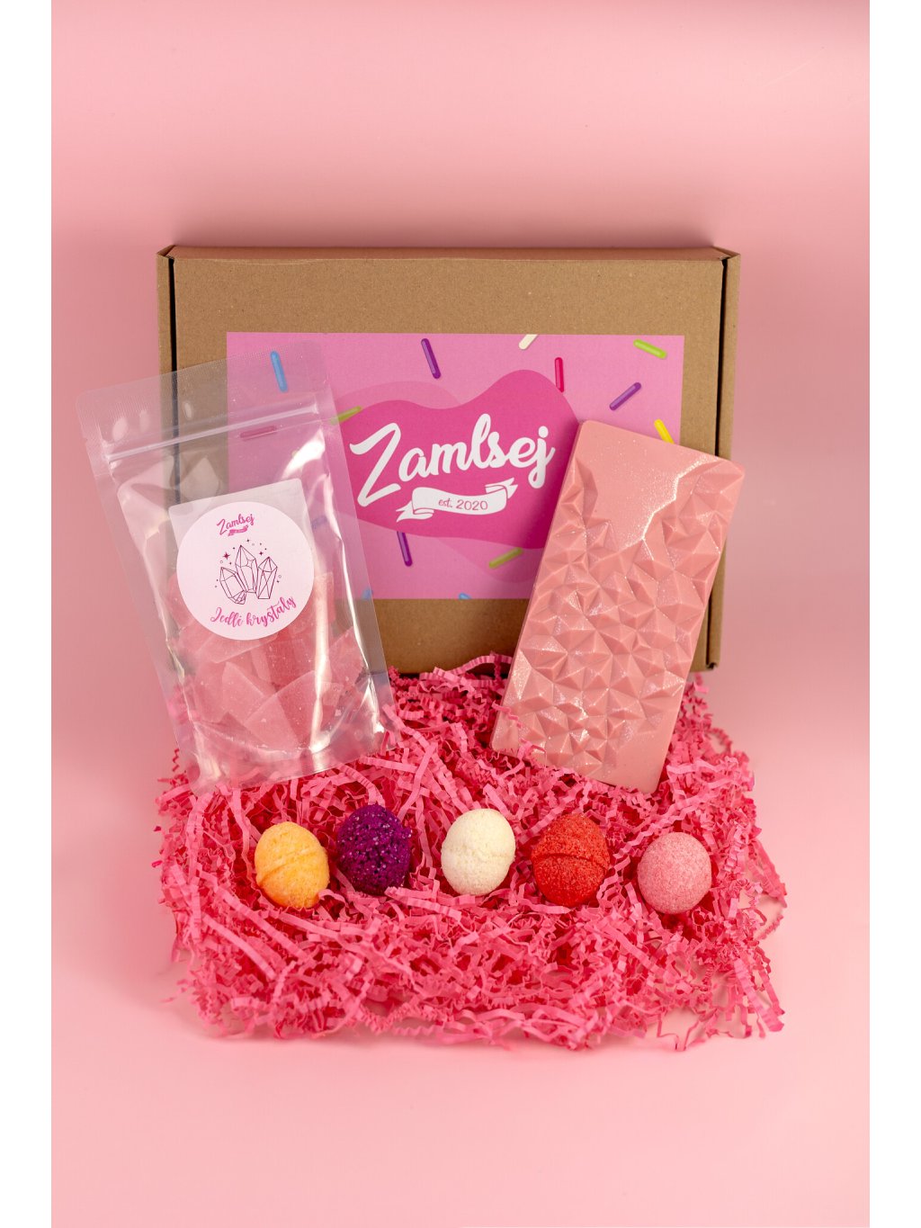 Sada je plná našich ČESKÝCH ručne vyrábaných sladkostí, ako sú jedinečné Drinkové bomby, lahodná čokoláda, ovocné Jedlé kryštály a vychýrené Čoko bomby.