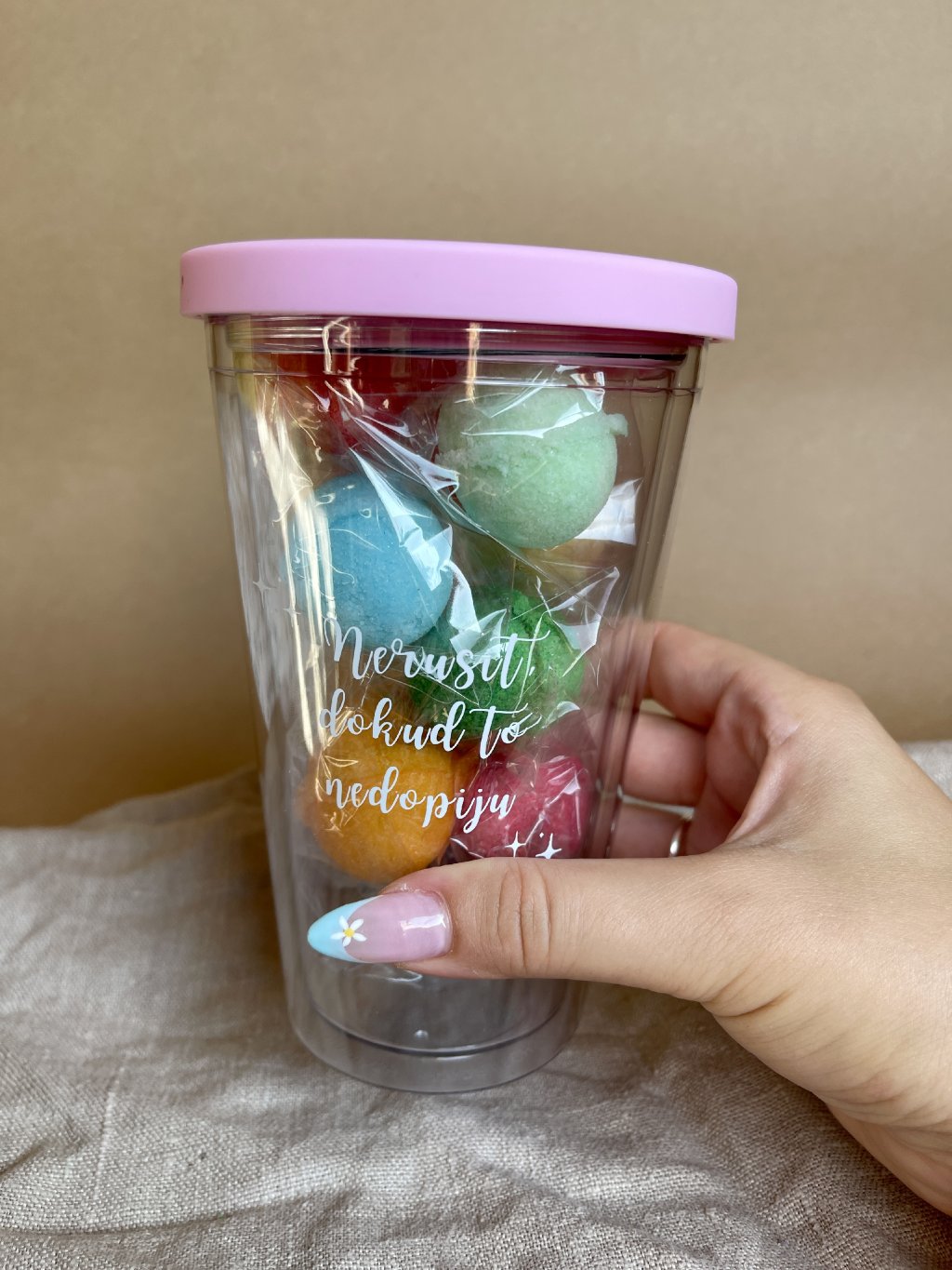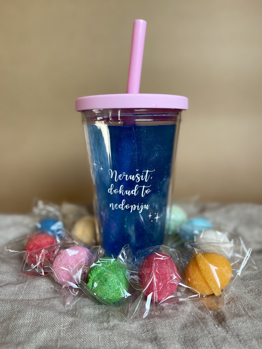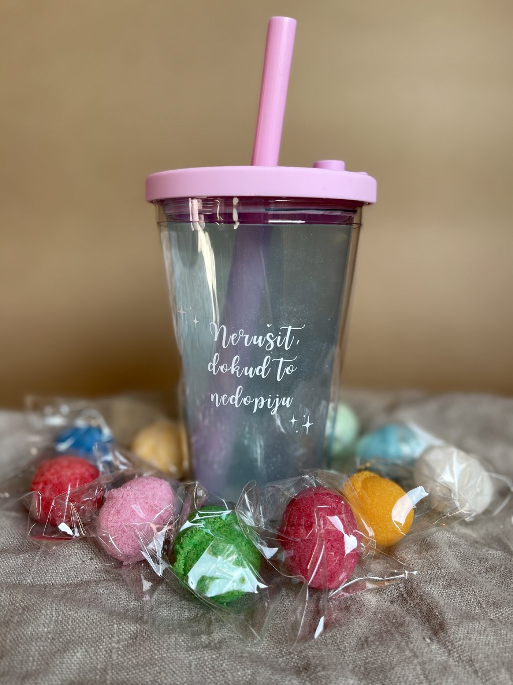 Ten najroztomilejší ružový pohár a k tomu hromada Drinkových bômb. Plus ako BONUS jedna Drinková bomba s TAJNOU príchuťou ZADARMO. To jednoducho musíš mať!