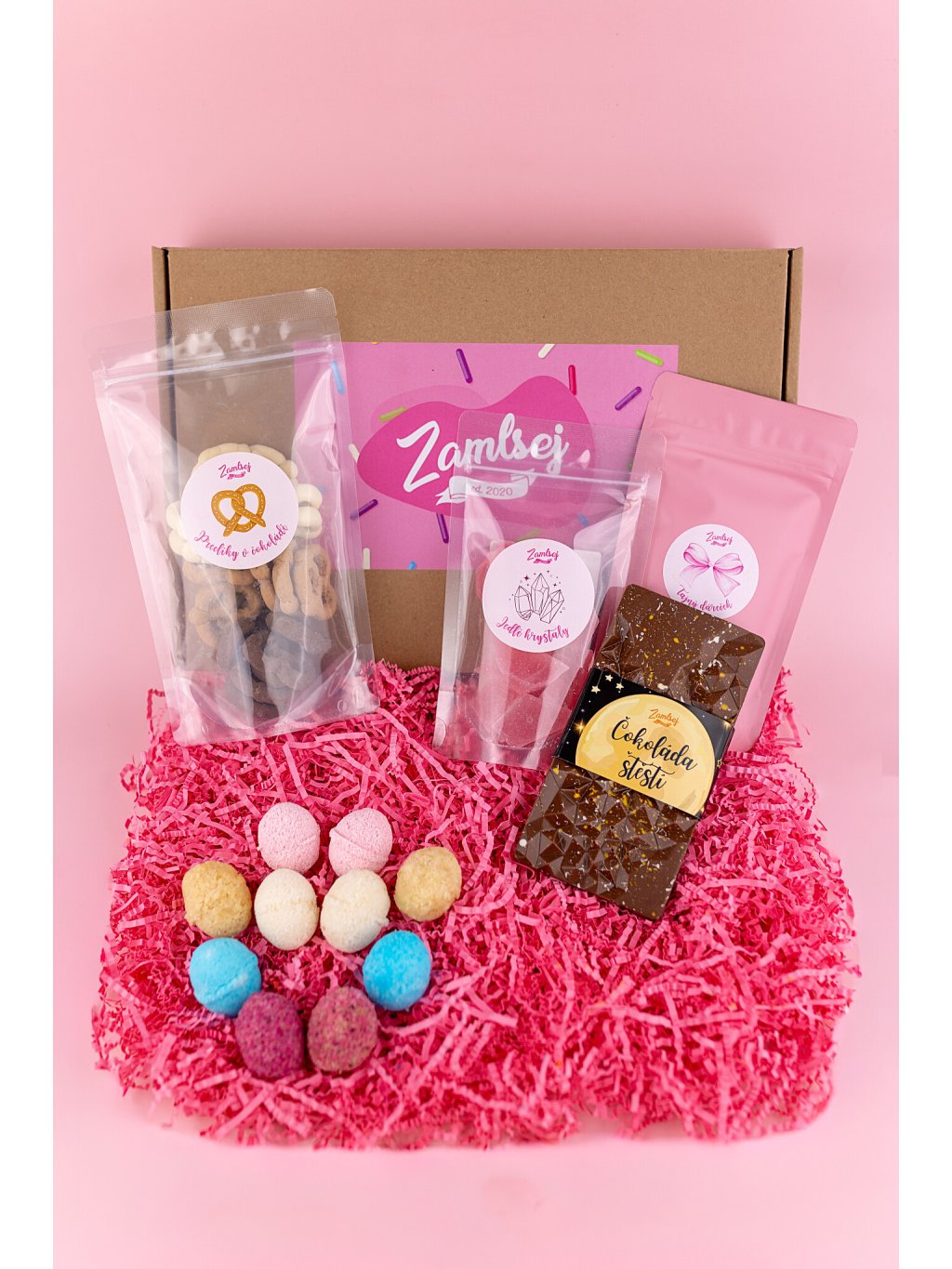 Vše zabalené vkrásné dárkové krabičce s uvítací kartičkou a horoskopem.